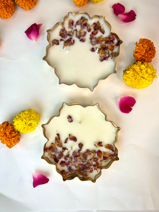 Lotus Urli - Set of 2 Rose Scented Candles